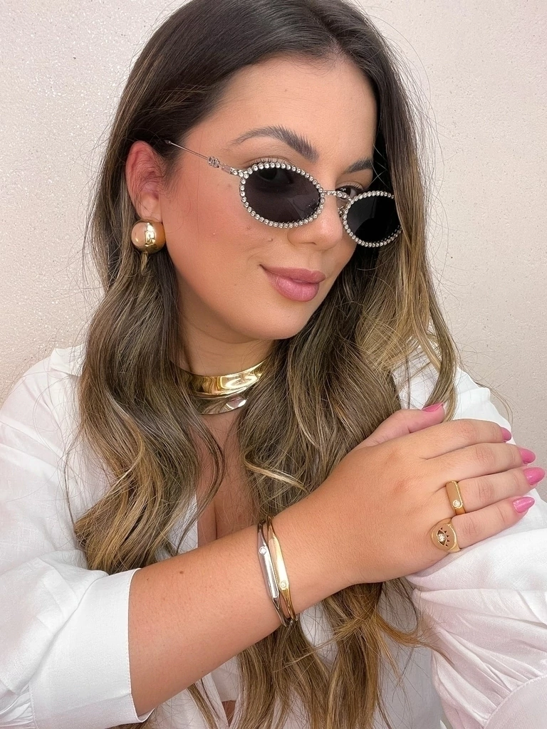 Óculos Design Oval com Strass